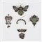 CINQUE SPILLE IN ARGENTO, ORO A BASSO TITOLO, PIETRE DI COLORE, DIAMANTI E...