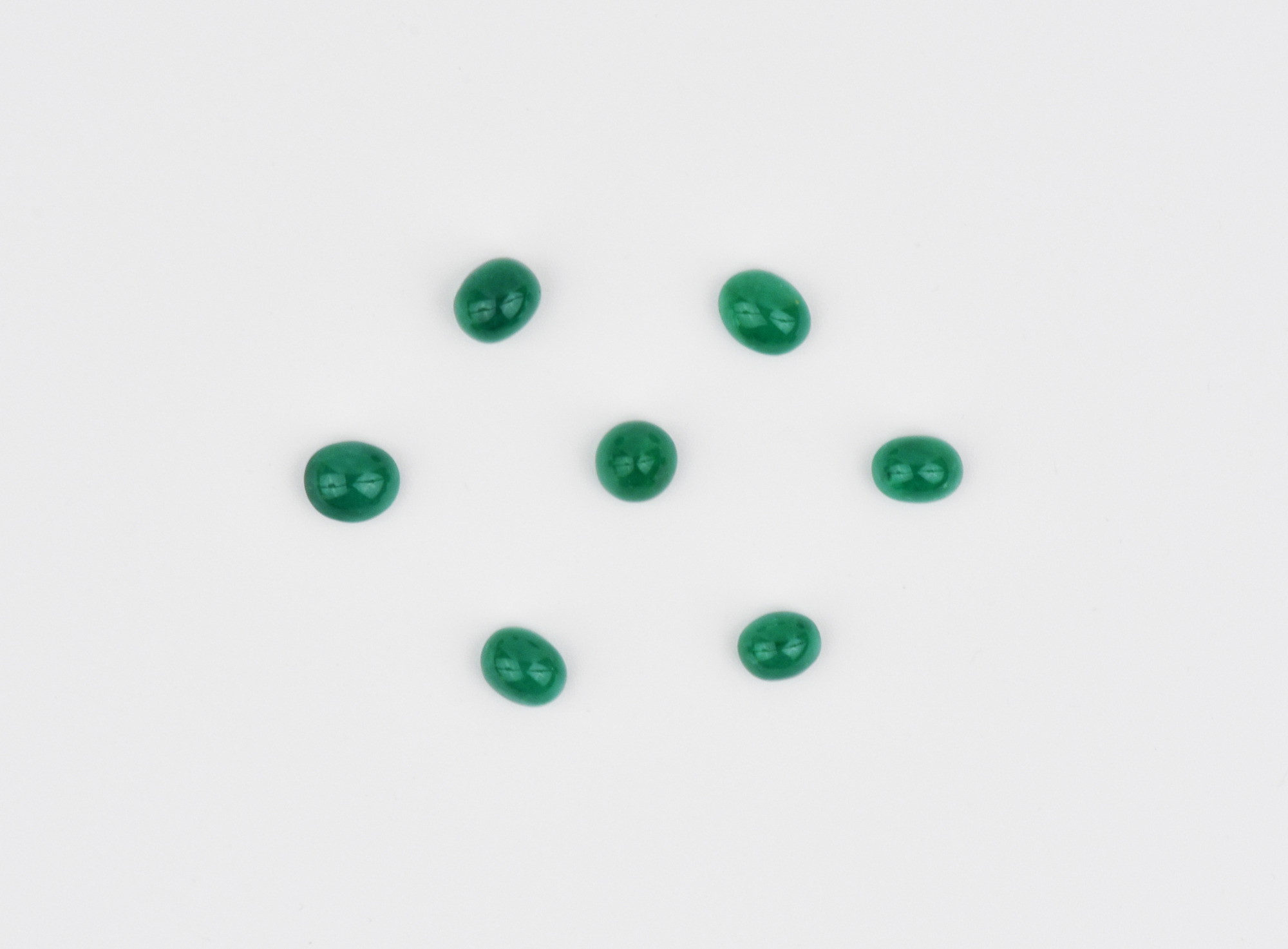 LOTTO DI SETTE SMERALDI smeraldi sintetici taglio cabochon ovale per ct 7.00...