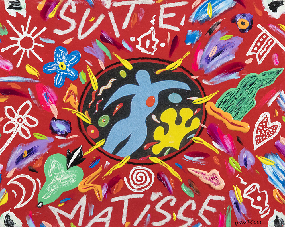 Bruno Donzelli (Napoli 1941 ) Suite Matisse , Olio e tecnica mista su tela, cm. 40x50, Firmato in basso a destra; Sul verso: firma e titolo. Autentica dell'Artista su foto.