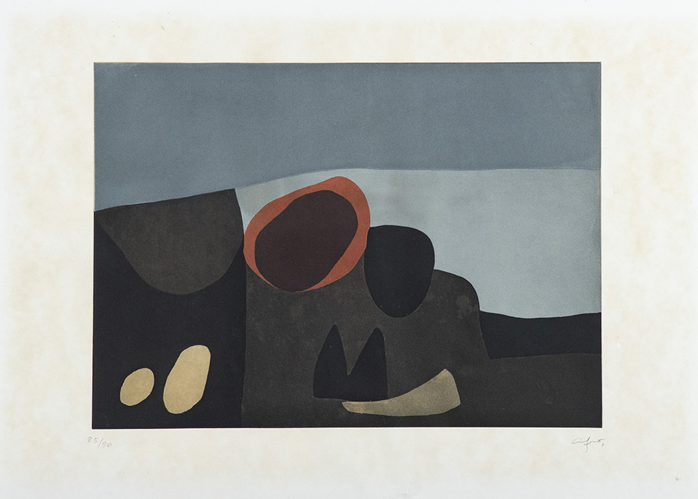 Afro Basaldella (Udine 1912 Zurigo 1976) Vulcani II 1974, Acquaforte di cm. 33x45, su carta di cm. 50x70, es. 85/90., Firma in basso a destra, tiratura in basso a sinistra. La carta presenta fioriture. Esposizione: "Afro a Ravenna - opere su carta, grafiche, arazzi e mosaici", a cura di Maurizio Calvesi, R.L. Stamperia d'Arte, Giugno - Settembre 1991, Museo San Vitale e casa Farini, pubblicato sul catalogo della mostra, pag. 122.