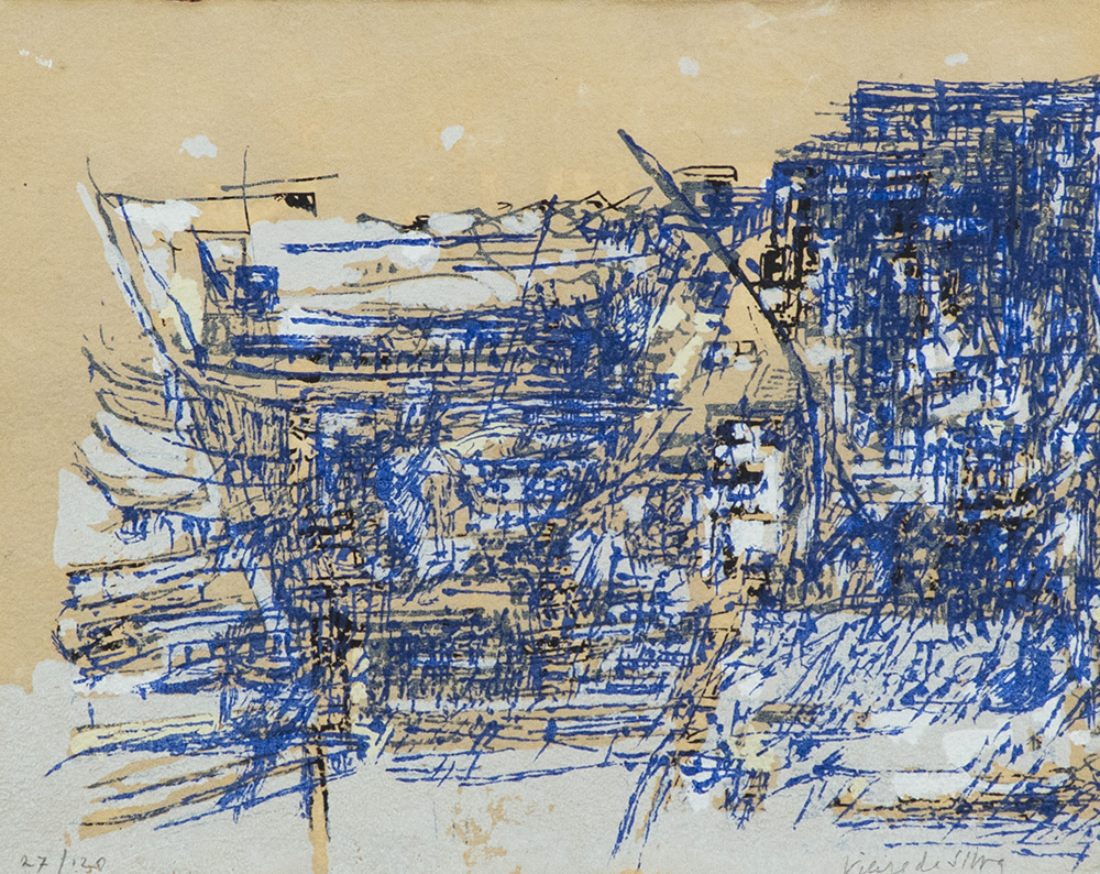 Maria Elena Viereira Da Silva (Lisbona, Portogallo 1908 1992) Senza titolo , Serigrafia su cartoncino, cm. 20x25, es. 27/120., Firma in basso a destra, tiratura in basso a sinistra.