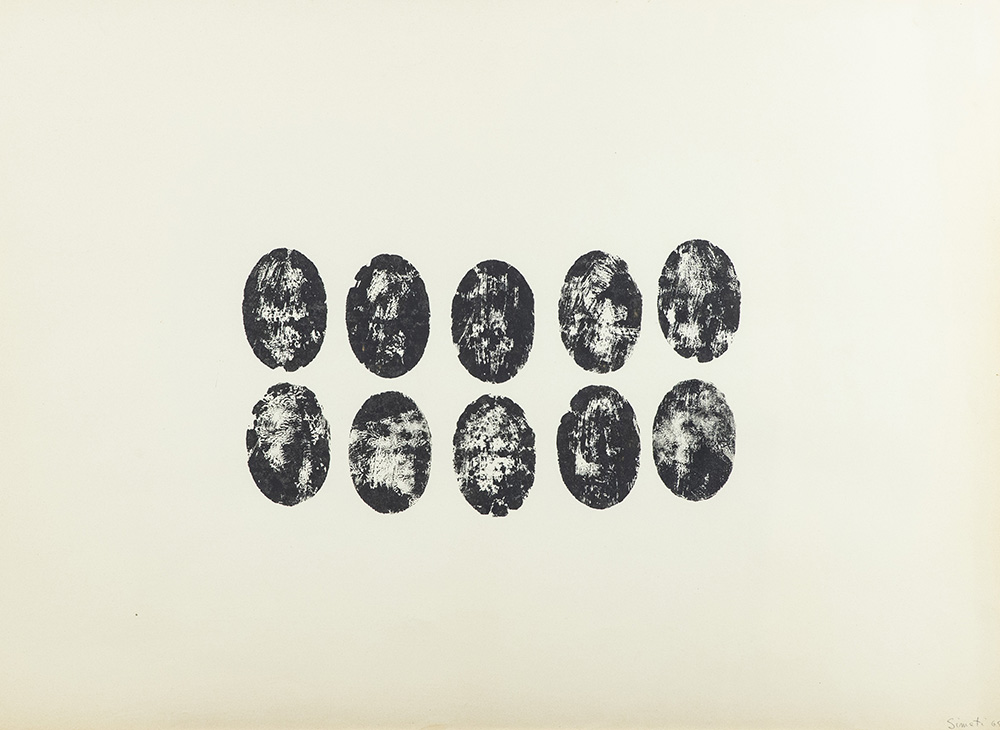 Turi Simeti (Alcamo (Tp) 1929 ) 10 ovali neri 1965, Smalto su carta, cm. 70x95, Firma e data in basso a destra. Autentica dell'Artista su foto con etichetta e timbri "Archivio Turi Simeti", Milano con Archivio n° 1965-CN0701.