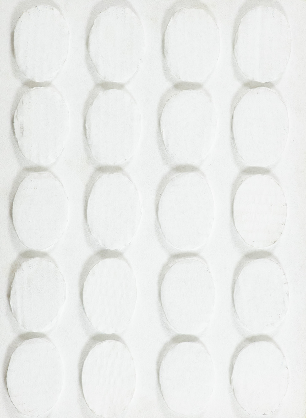 Turi Simeti (Alcamo (Tp) 1929 ) 20 ovali bianchi 1962, Tecnica mista e collage su cartone, cm. 40x30., Sul verso: firma e data. Autentica dell'Artista su foto.