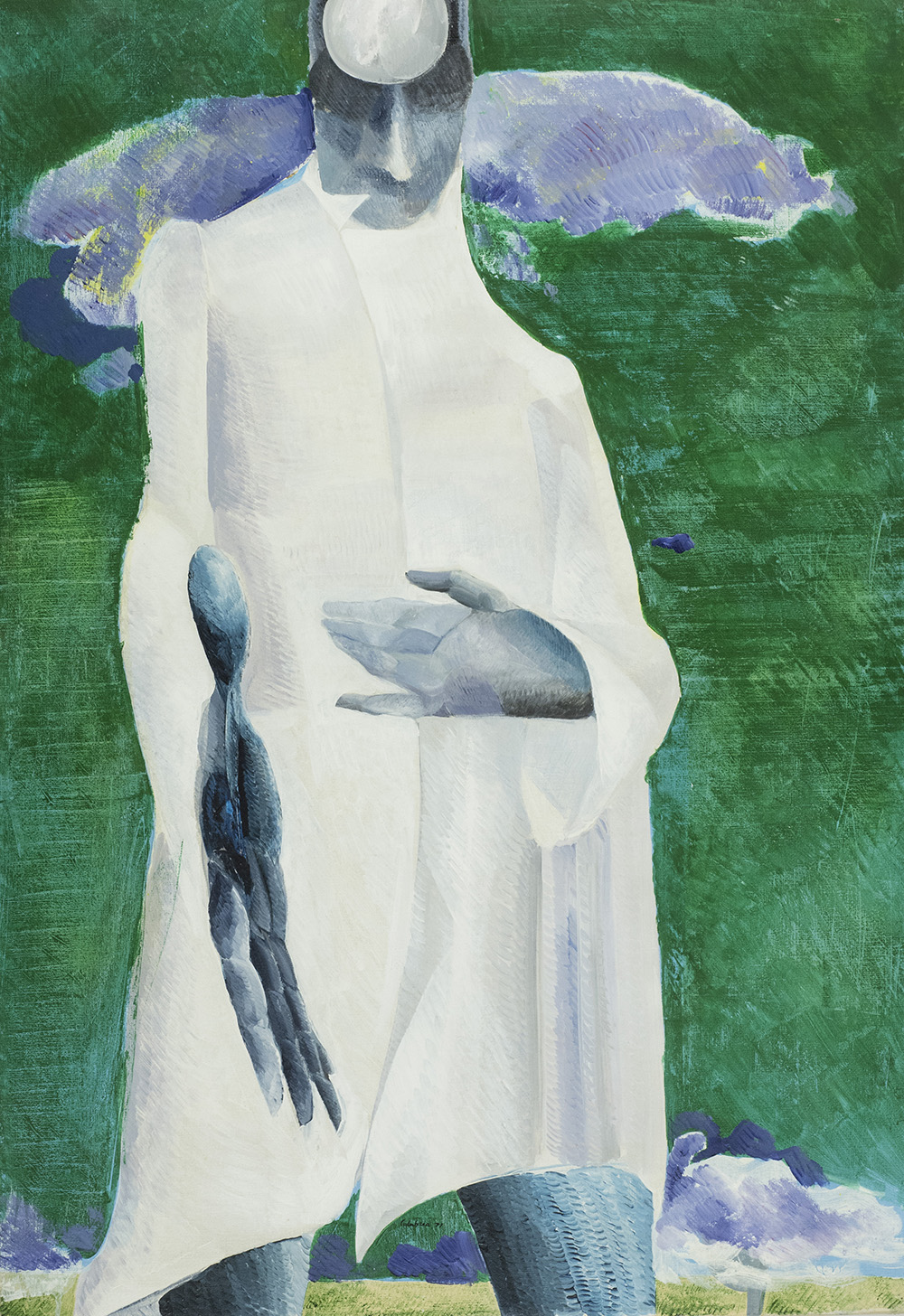 Ennio Calabria (Tripoli 1937 ) Studio per "la scienza è vostra amica" 1971 Olio su tela, cm. 100x70, Firma e data in basso al centro; Sul verso: firma, data, titolo; Timbro ed Etichetta "Galleria Lisi", Roma.