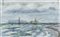 Sigfrido Bartolini (Pistoia 1932 2007) Lavori sul pontile 1965 Tecnica mista su carta, cm. 29x47,5., Firma e data in basso a destra. Sul verso: "Galleria d'Arte Vannucci", Pistoia.