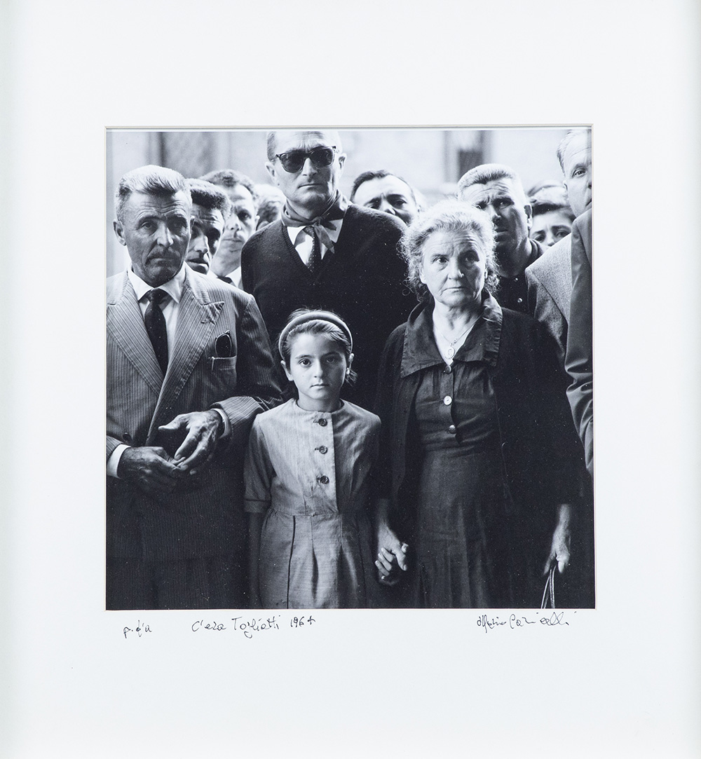 Mario Carnicelli (Atri (TE) 1937 ) C'era Togliatti 1964 Fotografia di cm. 29x29, es. p.a. , Firma in basso a destra, titolo e data in basso a sinistra. L'opera fa parte di un sevizio fotografico che l'Artista realizzò in occasione dei funerali di Palmiro Togliatti nel 1964. Dal 22 al 25 Agosto, nei tre giorni che fermarono il cuore dell'Italia comunista, egli documentò con incredibile intensità e modernità di sguardo, la partecipazione alle esequie del leader del PCI.