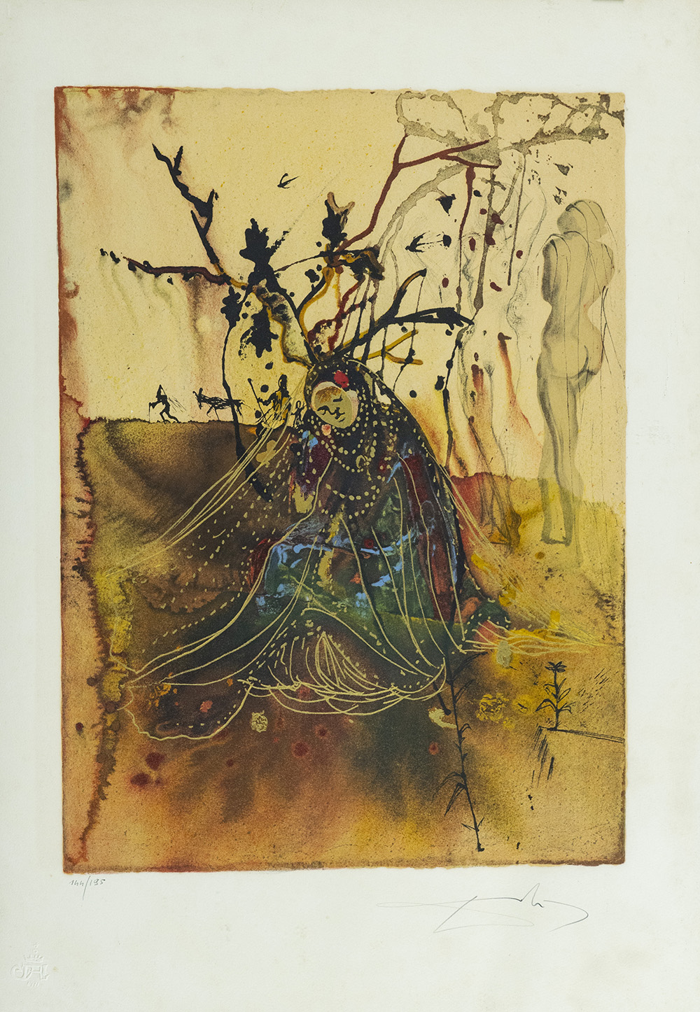 Salvador Dalì (Figuera 1904 1989) Dulcinea Acquaforte e acquatinta di cm. 55x40, su cartoncino, cm. 75x54, es. 144/195., Firma in basso a destra, tiratura e timbro secco "Dalì 1971" in basso a sinistra.