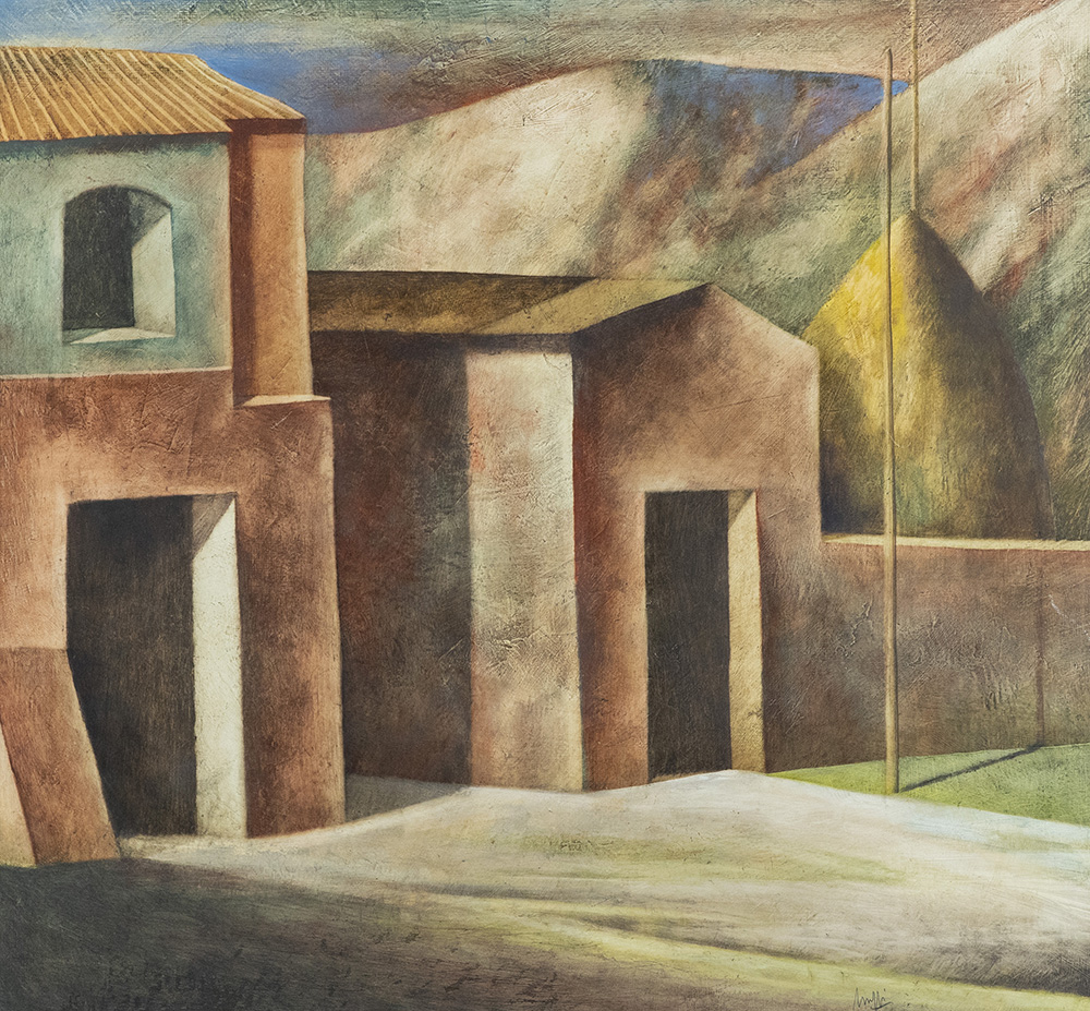 Marcello Scuffi (Tizzana (Pt) 1948 ) Montalbano 1979 Olio su tela, cm. 70x75,5., Firmato in basso a destra. Sul verso: firma, data e titolo.