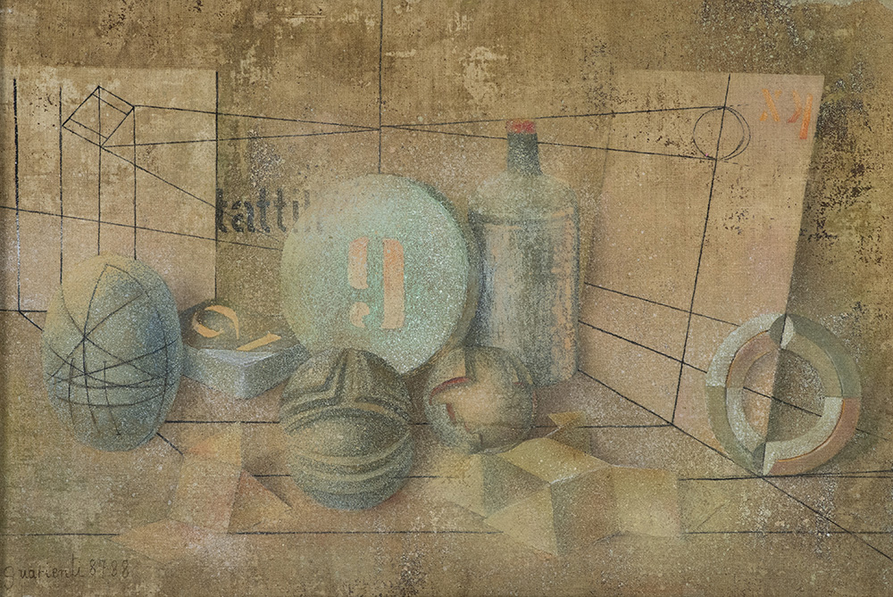 Carlo Guarienti (Treviso 1923 ) Tattile 1987-88 Tecnica mista su tela, cm. 39,5x59,5., Firma e data in basso a sinistra. Sul verso: firma.