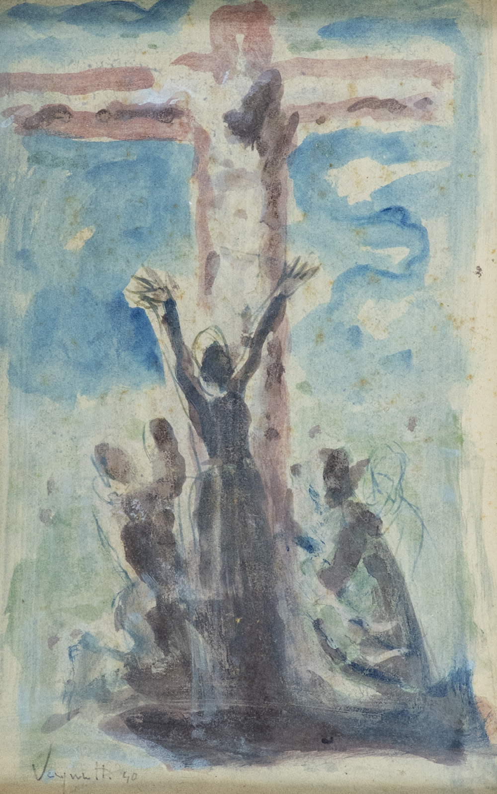 Gianni Vagnetti (Firenze 1897 Firenze 1956) Crocifissione 1940 Tecnica mista su cartoncino, cm. 28x18., Firma e data in basso a sinistra.