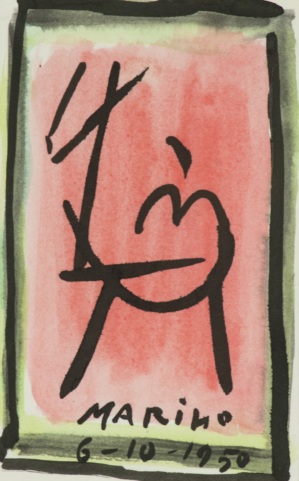 Marino Marini (Pistoia 1901 Viareggio 1980) Cavallo 1950 Tempera su carta, cm. 19x12, Firma e data in basso al centro Autentica della Fondazione Marino Marini su foto, con timbri e Archivio n° 543.