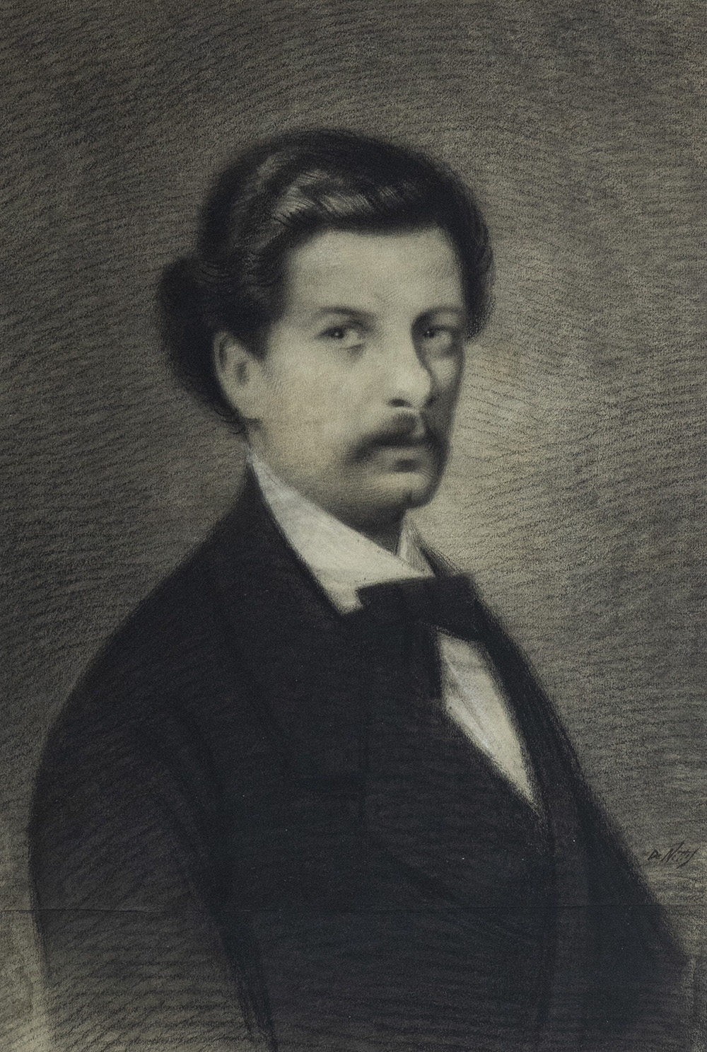 Giuseppe De Nittis (Barletta 1846 Parigi 1884) Ritratto maschile Pastello su carta, cm. 62,5x43., Firmato in basso a destra. Autentica della Fondazione Enrico Piceni su foto, con Archivio n° 142.