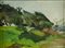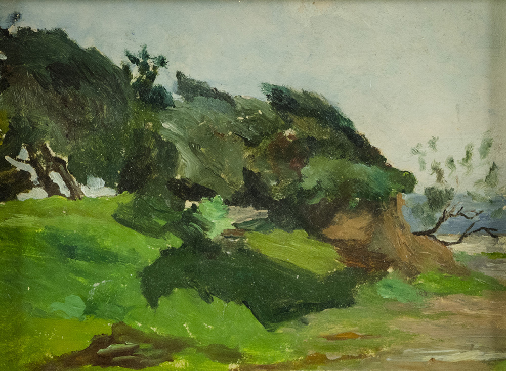 Guido Bertini (Milano 1872 Varese 1938) Presso la capannina Olio su cartone, cm. 12x16, Sul verso: dedica e firma.