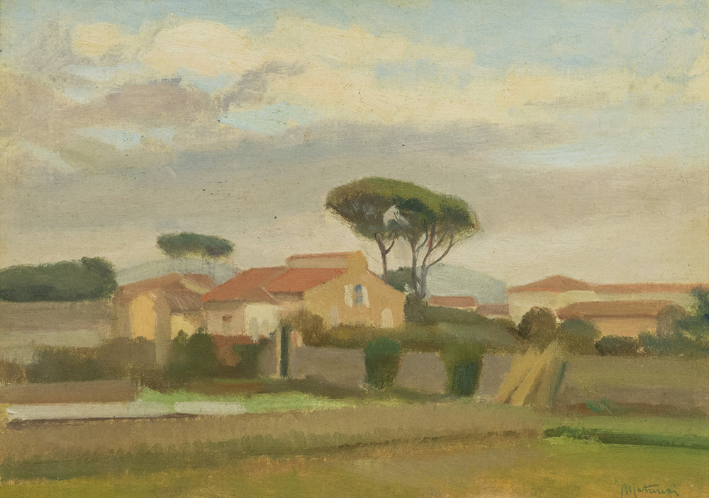 Ferruccio Mataresi (Livorno 1928 2009) Paesaggio Olio su cartone telato, cm. 25x35, Firmato in basso a destra.
