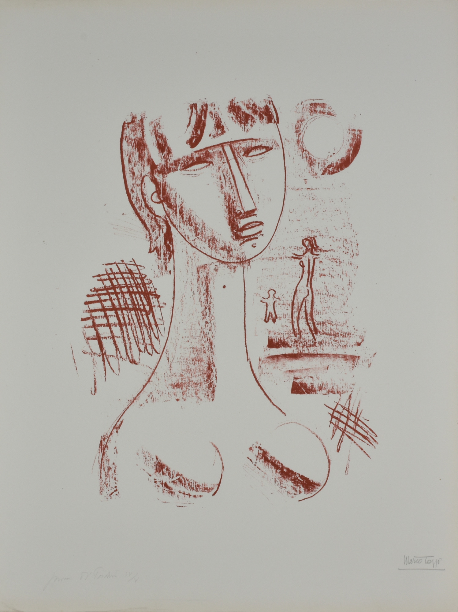 Mario Tozzi BUSTO DI DONNA CON FIGURE litografia su carta, cm 63x47 esemplare...