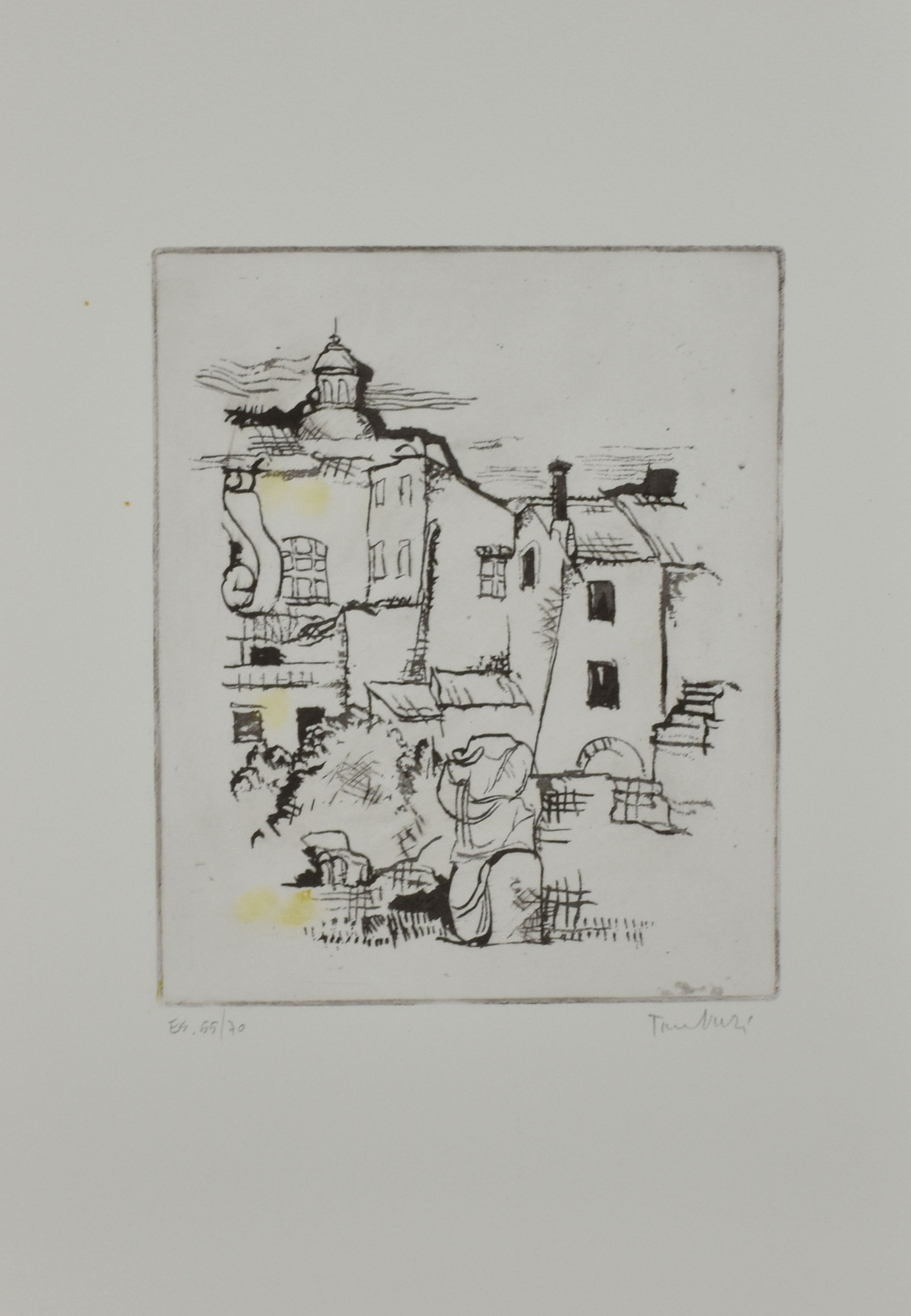 Orfeo Tamburi RUDERI ROMANI acquaforte su carta, cm 49x36 (lastra cm 26,5x21,5) esemplare 55 di 70 sul fronte: firma e timbro a secco "Luigi De Tullio Stampatore"