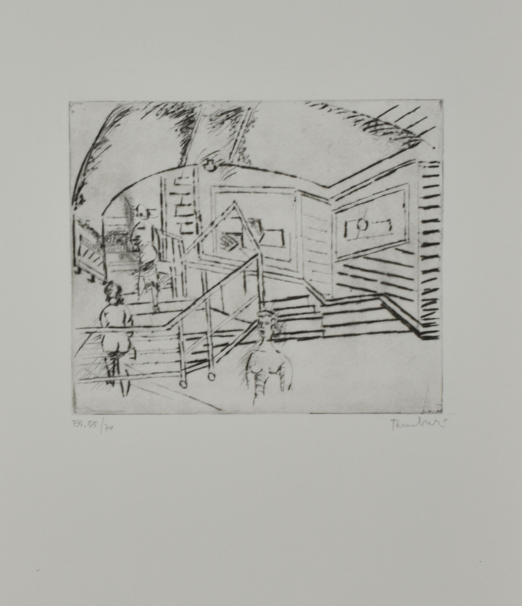 Orfeo Tamburi SCENA DI METRO acquaforte su carta, cm 49x36 (lastra cm 19,5x23) esemplare 55 di 70 sul fronte: firma e timbro a secco "Luigi De Tullio Stampatore"