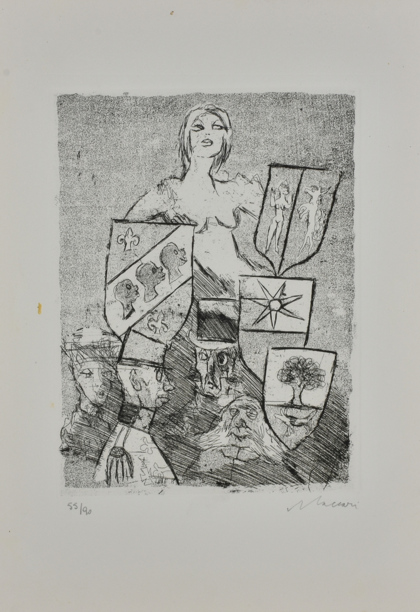 Mino Maccari SENZA TITOLO incisione su carta, cm 49x35 (lastra cm 32,6x24,4) esemplare 55 di 90 sul fronte: firma