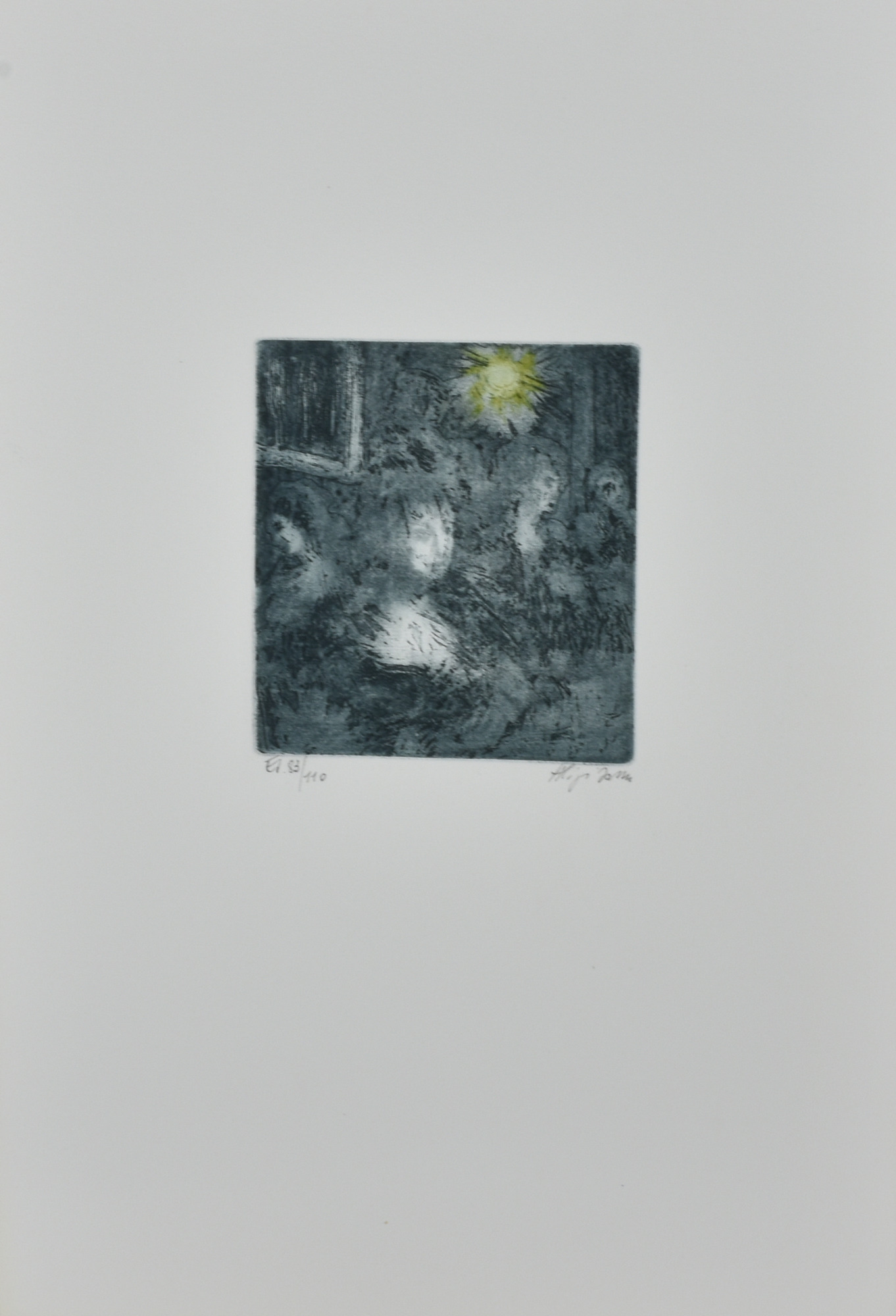 Aligi Sassu CAFFE' 1956 acquaforte su carta, cm 45x30 (lastra cm 13,8x12,5) esemplare 83 di 110 sul fronte: firma