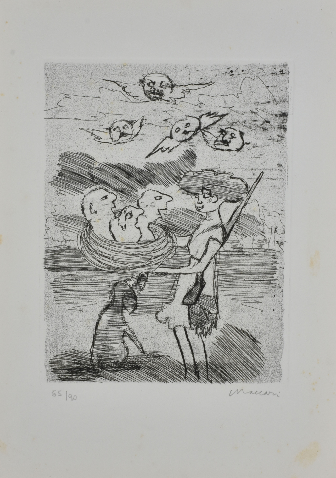 Mino Maccari SENZA TITOLO incisione su carta, cm 49x35 (lastra cm 32,6x24,4) esemplare 55 di 90 sul fronte: firma