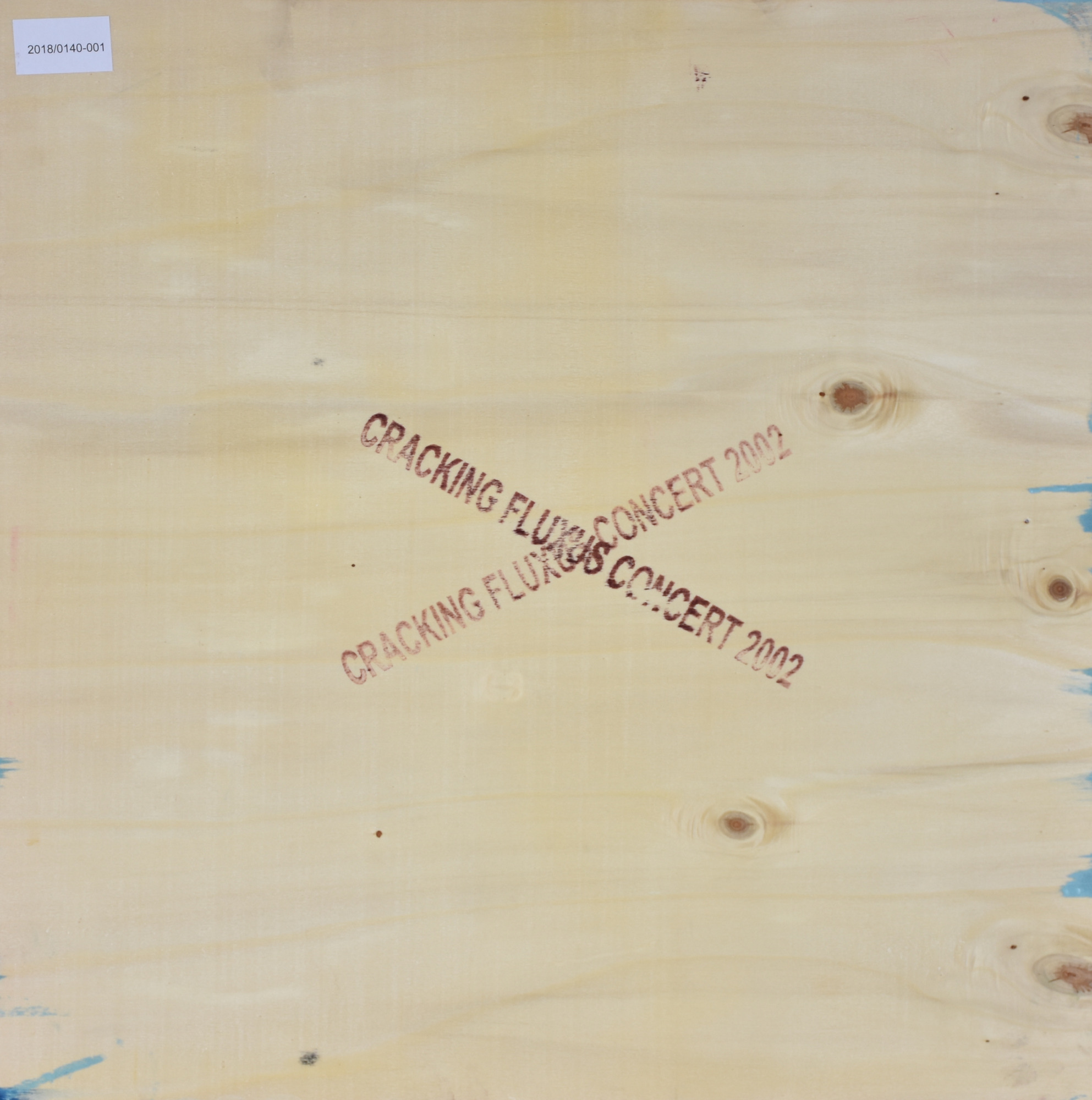 Giuseppe Chiari Cracking Fluxus Concert 2002 tecnica mista e collage su tavola, cm 62x62 sul fronte: firma e titolo sul retro: titolo L'opera è accompagnata dall'autentica dell’artista su fotografia