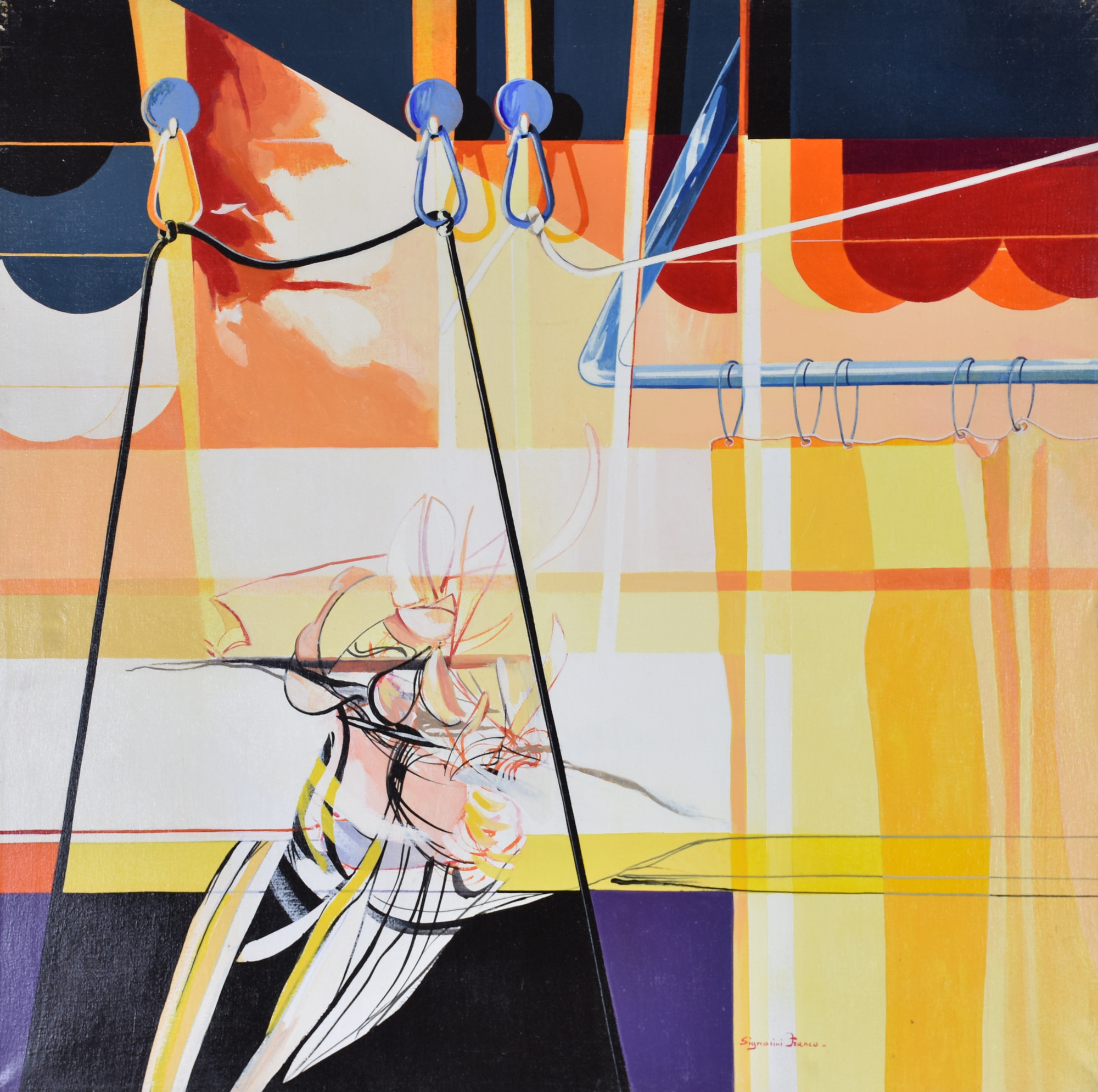 Franco Signorini Dietro le Quinte olio su tela, cm 70x70 sul fronte: firma sul retro: firma e titolo