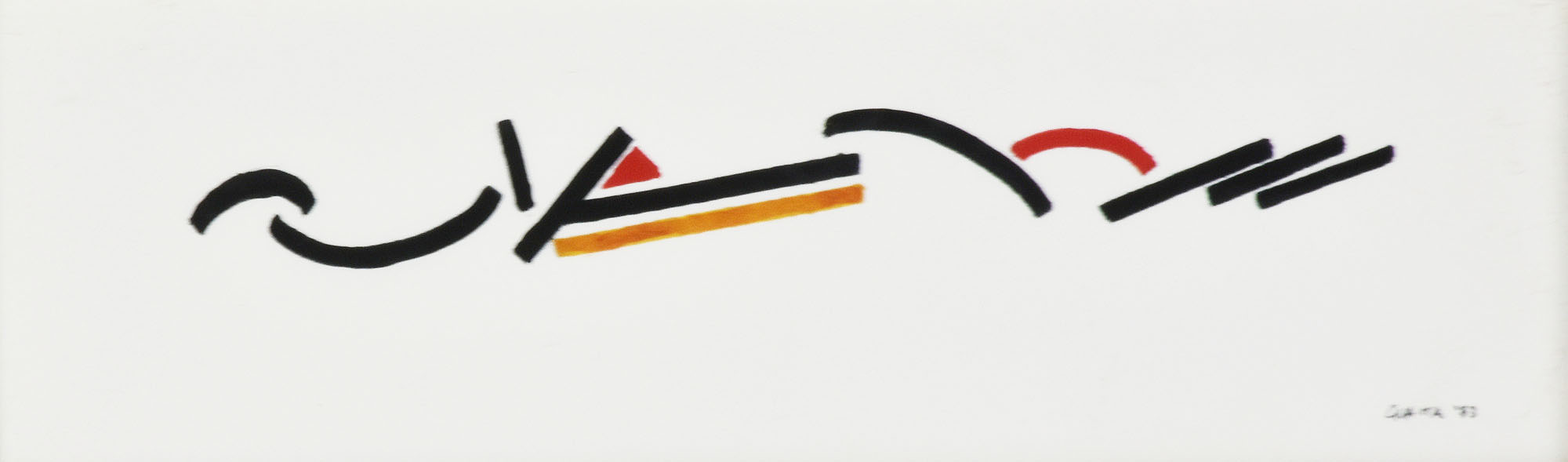 Carlo Guaita NAVIGAZIONE SUL NILO tecnica mista su carta, cm 8x24 sul fronte:...