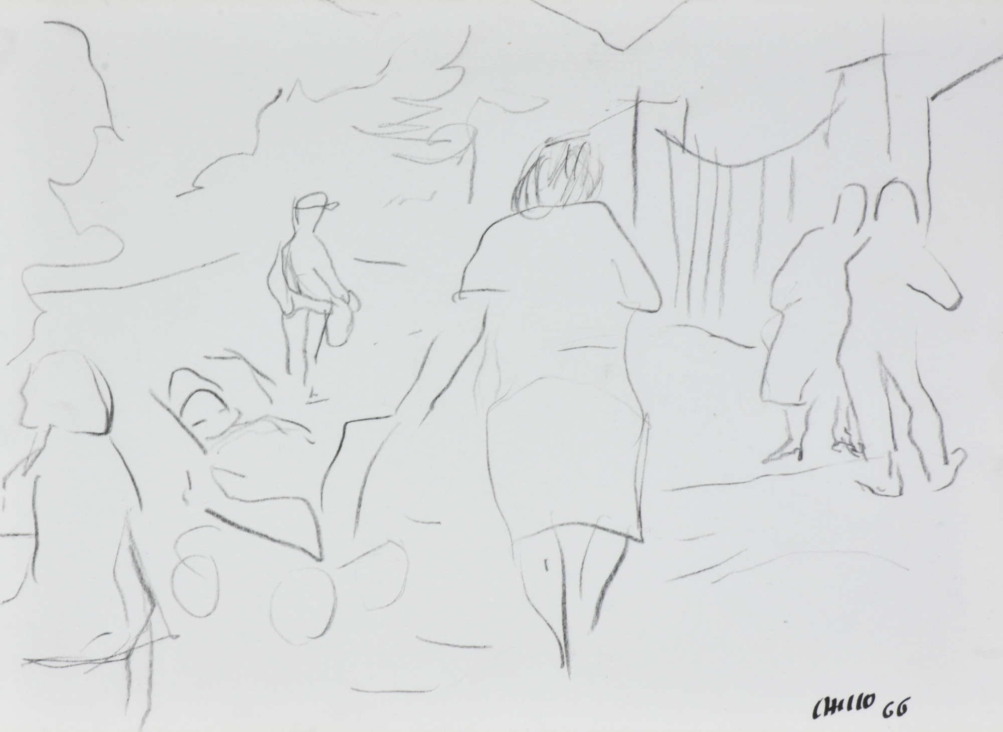 Chicco FIGURE carboncino su carta, cm 24x32 sul fronte: firma e data eseguito...