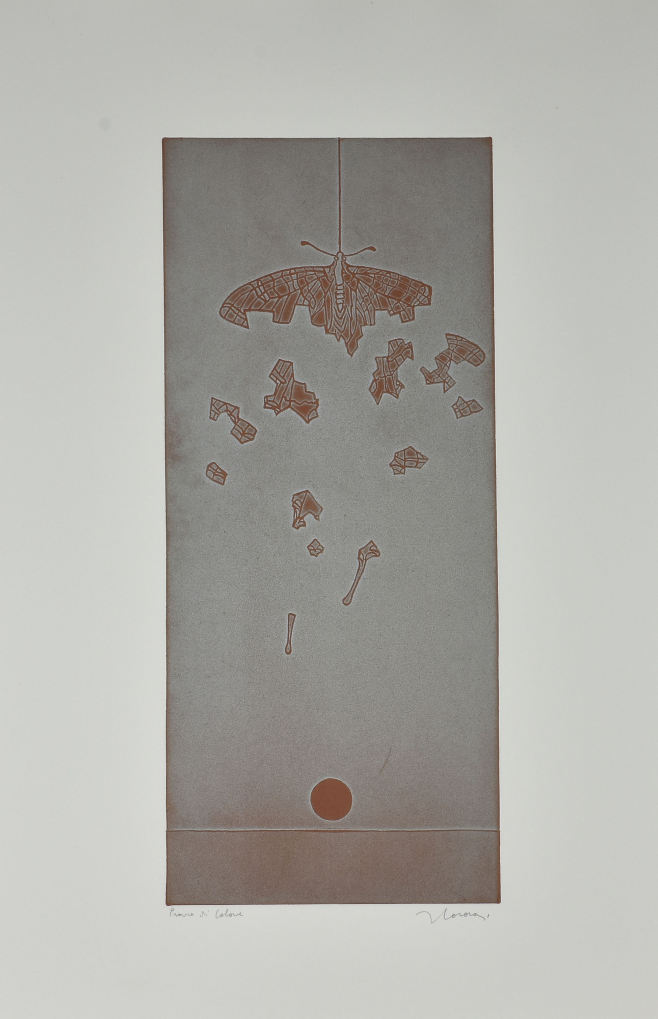 Francesco Casorati SENZA TITOLO incisione su carta, cm 70x50 (lastra cm 50x22) esemplare prova di colore sul fronte: firma