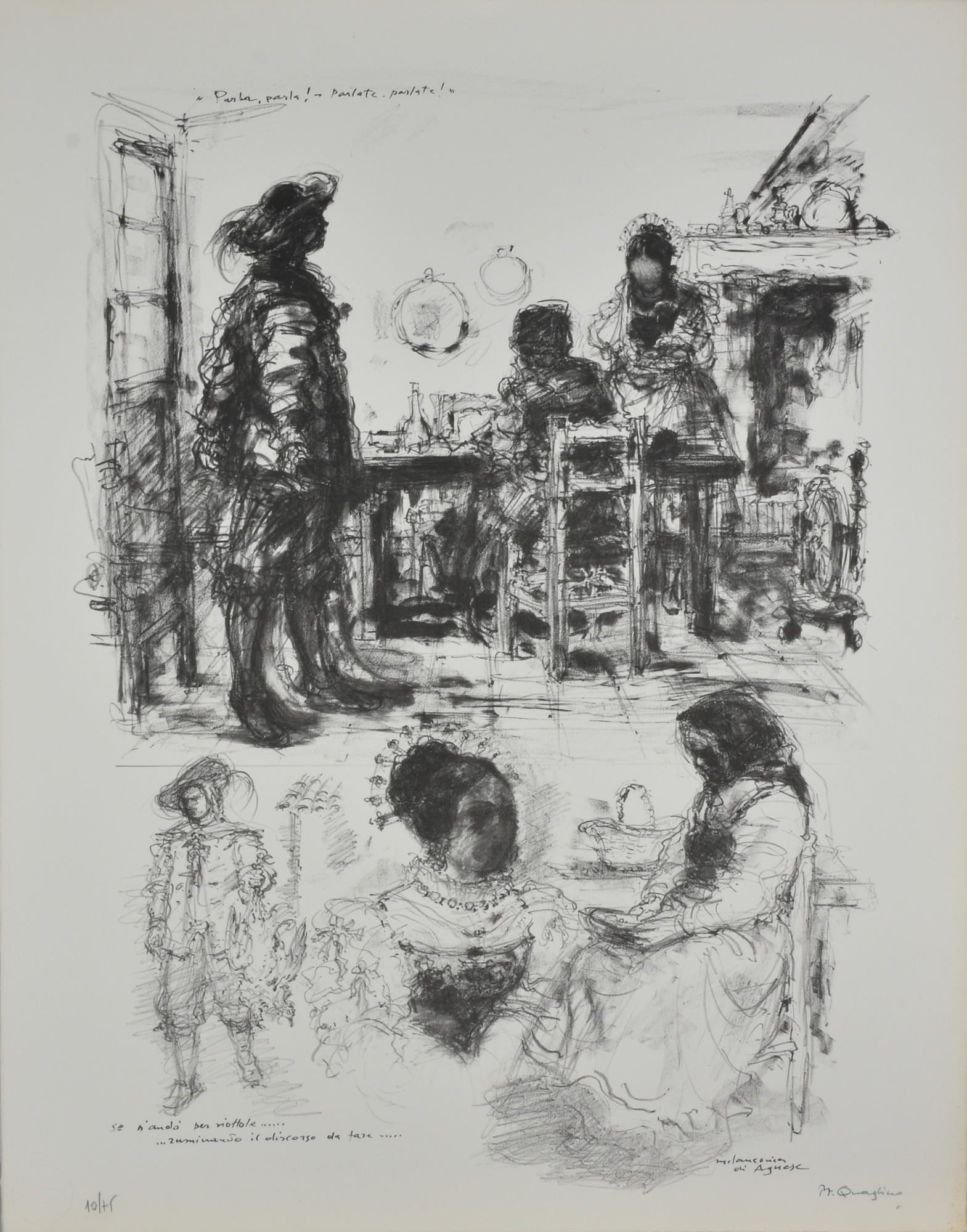 Massimo Quaglino I PROMESSI SPOSI litografia su carta, cm 65x51 esemplare 10 di 75 sul fronte: firma e timbro a secco "EspoLito Torino"