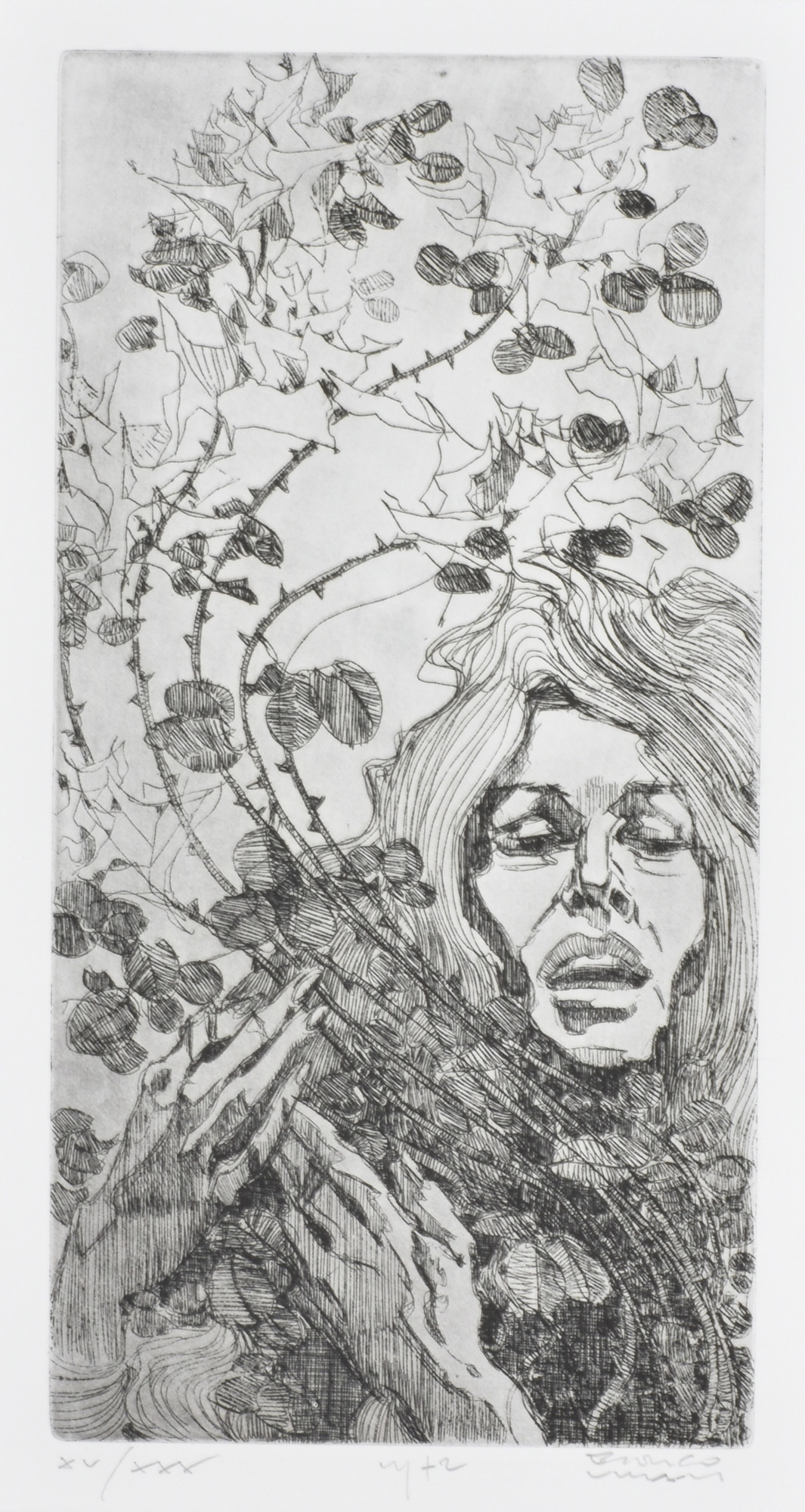 Enrico Villani SON TORNATE A FIORIRE LE ROSE incisione su carta, cm 40x34...