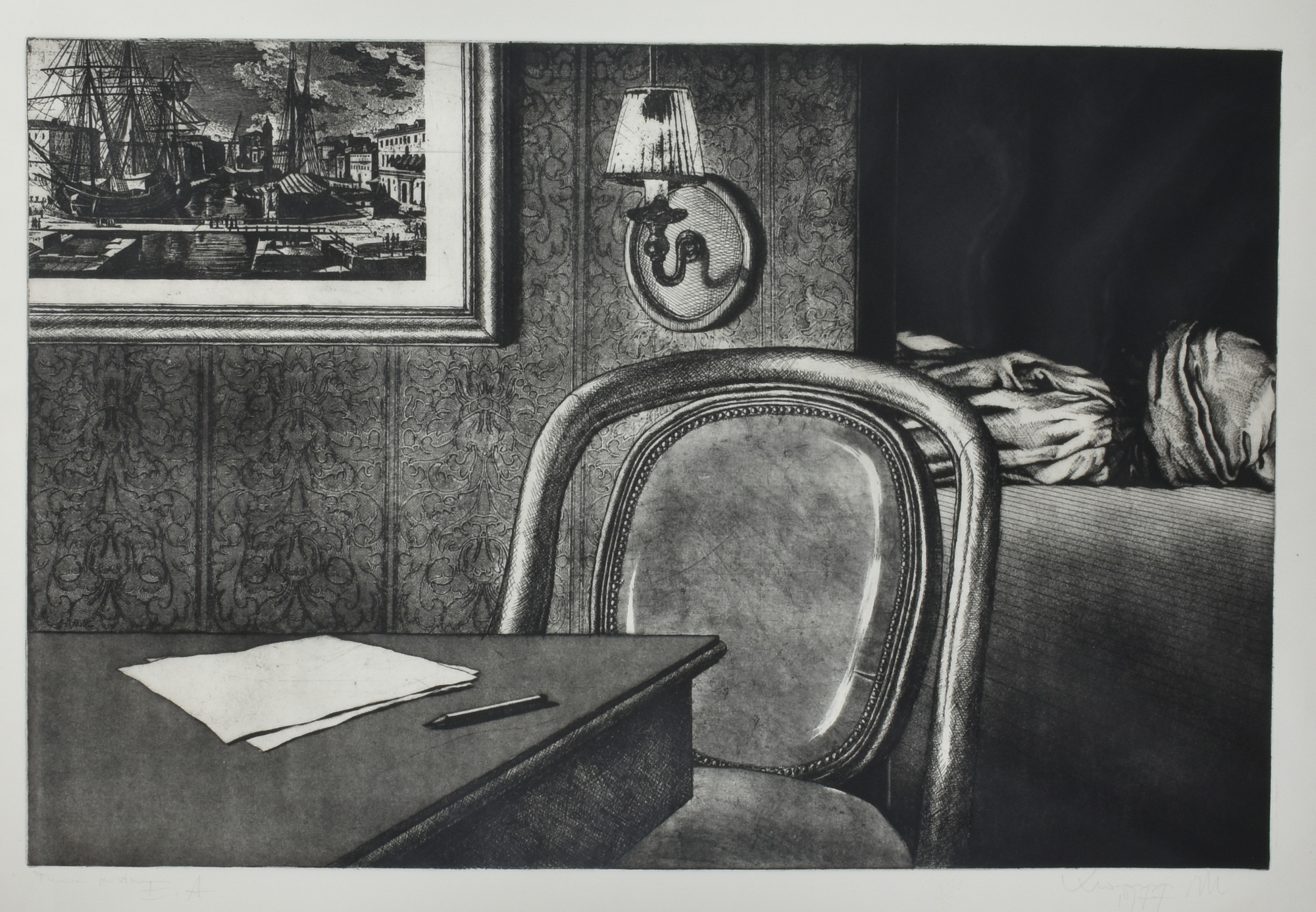 Marjan Kravos SENZA TITOLO incisione su carta su carta, cm 70x100 (lastra cm 58,5x89) esemplare E.A. sul fronte: firma e data eseguita nel 1977