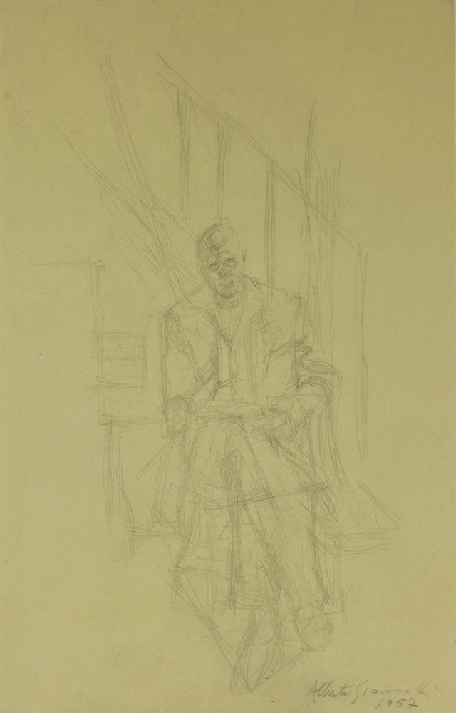 Alberto Giacometti Ritratto di Jean Genet Fotoincisione, cm 50x33 L'opera fa parte dell'album di fotoincisioni "Quarantacinque disegni" di Alberto Giacometti editi nel 1963 da Einaudi di Torino sotto la direzione di Lamberto Vitali e con la prefazione di Jean Leymarie. L'edizione è stata pubblicata in 1.245 esemplari