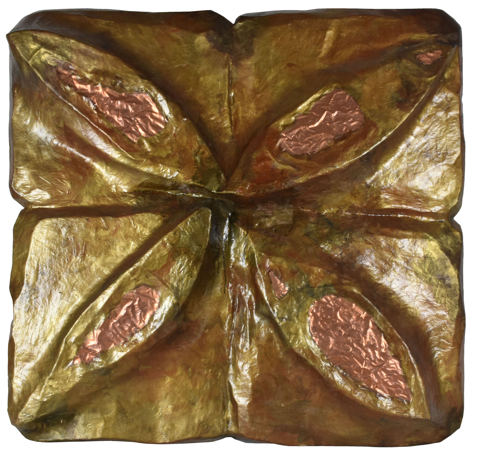 Ignoto SENZA TITOLO scultura in cartapesta e rame pressata su polistirolo e modellata, cm 102x105 sul retro: firma e data eseguita nel 1998 L'opera presenta lievi danni nella parte destra