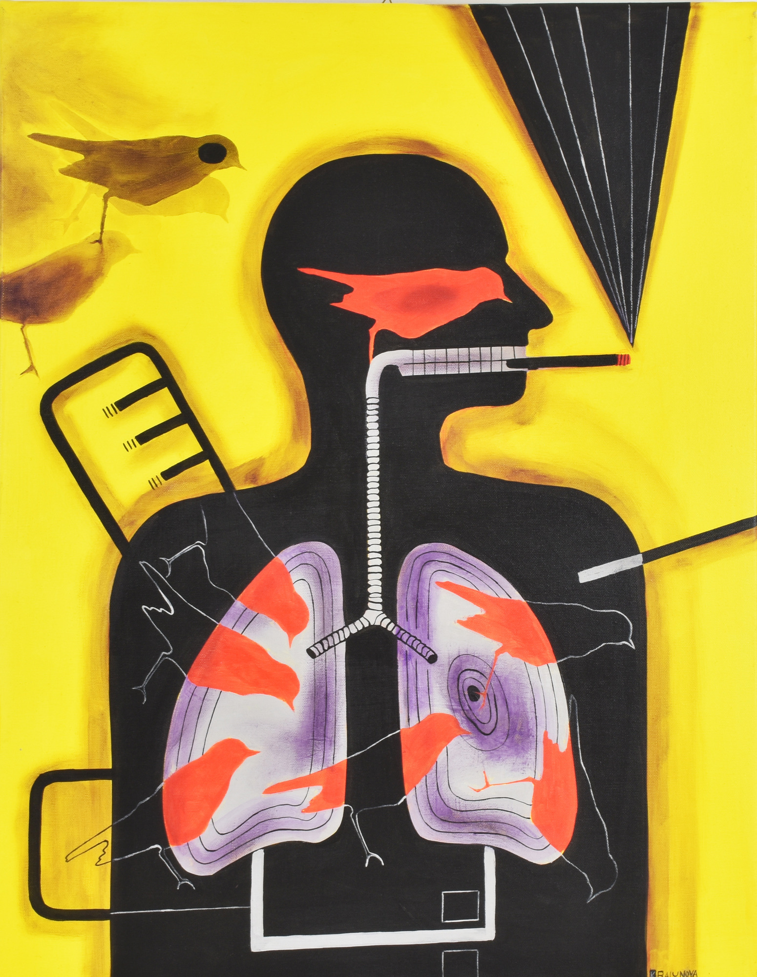 Katerina Balunova "SMOKER" acrilico su tela, cm 60x80 sul fronte: firma...
