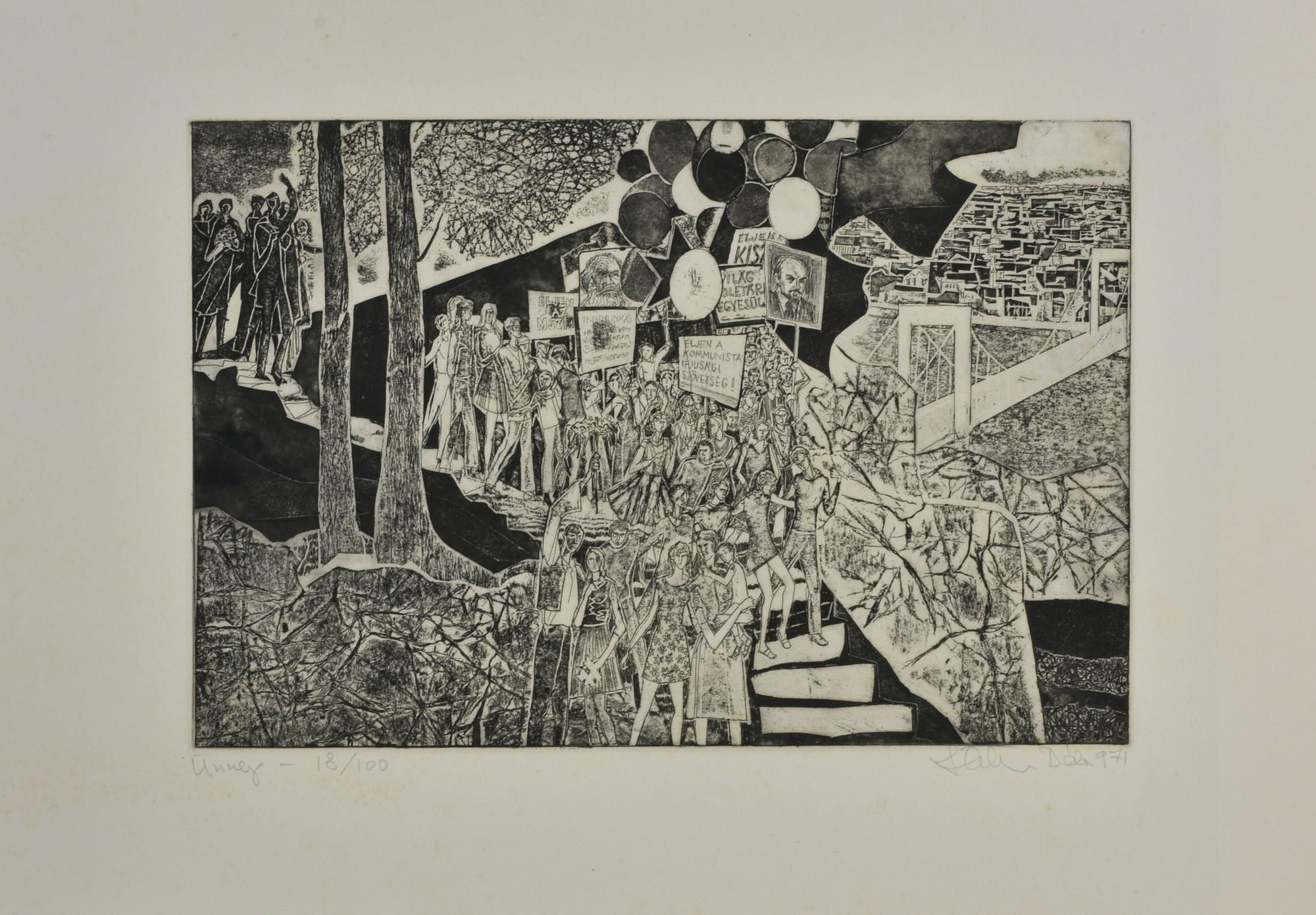 Bela SENZA TITOLO incisione su carta, cm 61x43 (lastra cm 26x38) esemplare 18 su 100 sul fronte: firma e data eseguita nel 1971 L'opera presenta alcune tracce di muffa
