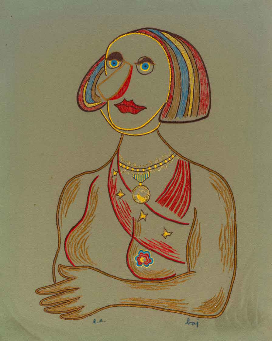 ENRICO BAJ (1924 - 2003) Senza titolo 1977 Panno ricamato a mano, es. e.a. 75...