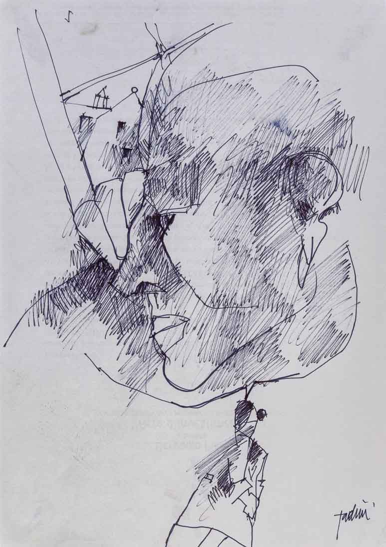 EMILIO TADINI (1927 - 2002) Senza titolo anni '90 Biro su carta applicata su...