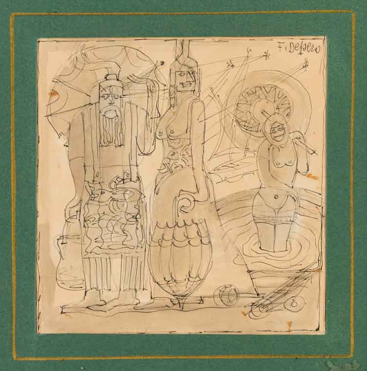 FORTUNATO DEPERO (1892 - 1960) Bagnanti 1923-24 circa Tecnica mista su...