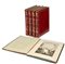 Folio elefante (558 x 413mm) e 4 volumi di testo in 4to (294 x 223mm). Occhielli, atlante con titolo inciso e 69 tavole (testo: senza ultima bianca, manca il ritratto inciso, minime e occasionali tracce di umidità al margine inferiore; atlante: poche minime macchie e poche carte leggermente brunite). Volumi di testo in marocchino rosso con decorazioni in oro ai piatti, dorsi, unghiature e tagli (buone condizioni, minimini graffi e lievi macchie di umidità); atlante in pelle coeva, tagli blu (leggermente graffiato con alcune piccole perdite alle estremità e angoli un po' schiacciati). Provenienza: S.P. Eugenii (ex libris). (5).