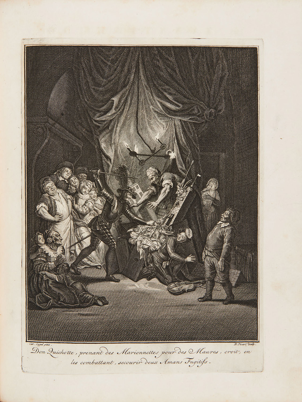 4to (268 x 215mm). Frontespizio in rosso e nero con vignetta incisa in rame, testatine e iniziali incise in rame e legno, 31 incisioni in primo stato senza numerazione di Coypel, Cochin, Boucher, le Bas e Tremolières da Picart, Van Schley e altri (alcune bruniture, manca l'ultima carta con l'avviso al legatore e il rimando "avis" è stato occultato). Pelle coeva, filetto in oro ai piatti e dorso in oro, tagli rossi (alcuni difetti e perdite). Provenienza: Conte di Perrone (1789-1849, exlibris; politico, patriota e militare).