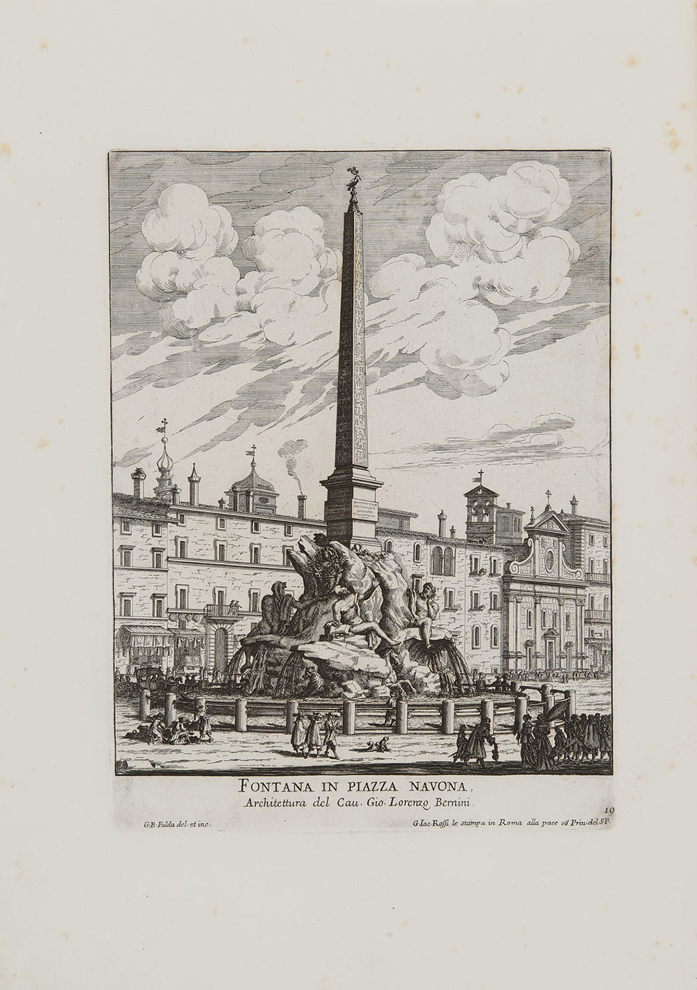 Tiratura della tipografia camerale della più celebre opera del Falda: 'This collection of plates is the most charming that has ever appeared on the fountains of Rome and its environs.. all copies examined vary in numbering and arrangement of plates' (Fowler).