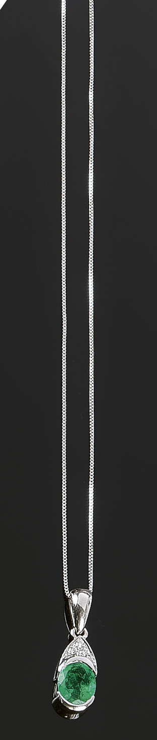CATENA CON CIONDOLO Catena e ciondolo in oro bianco con smeraldo di taglio ovale e diamantini taglio brillante rotondo Peso gr. 3,6