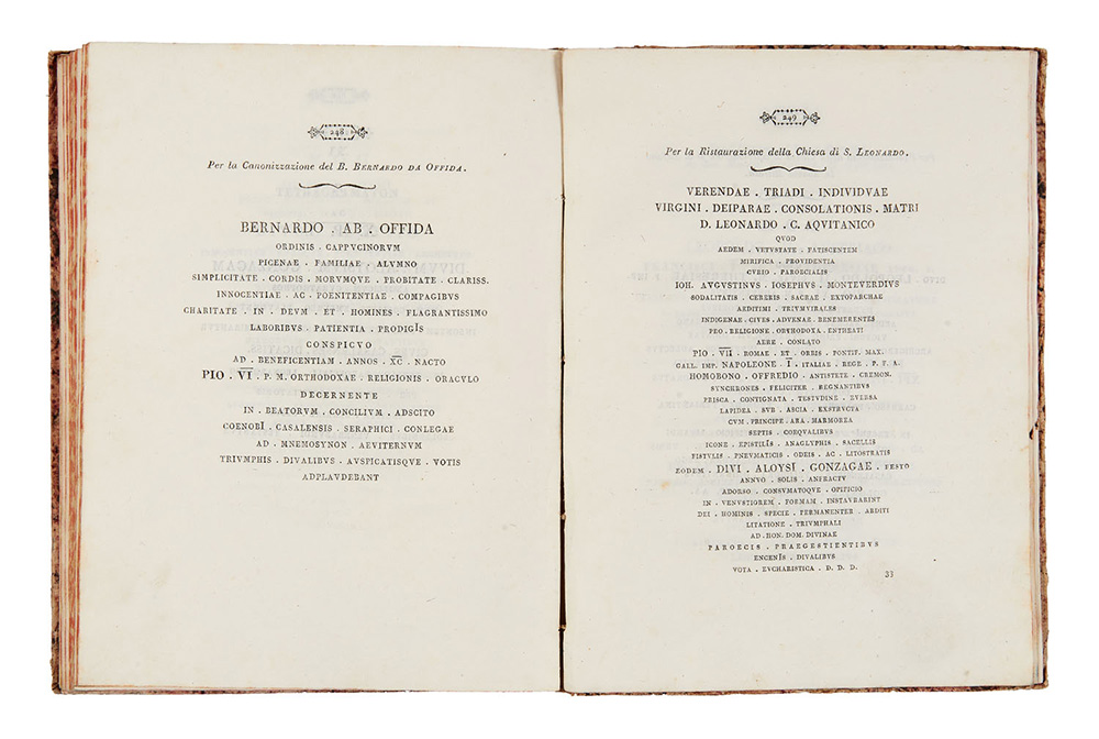 4to (236 x 175mm). Piccola incisione in legno al frontespizio, con ultima bianca (poche sporadiche macchie). Cartone marmorizzato coevo, etichetta di carta al dorso, tagli rossi marmorizzati (graffiata). Provenienza: Lugo (timbro di biblioteca privata al frontespizio).