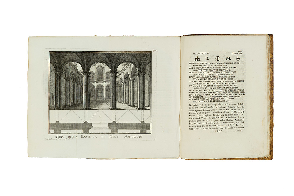 First edition of this famous work on Milan from the origin until 1447 comprising also 3 volumes of Continuazione delle Memorie, enriched by an important figurative set with monuments of Milan.