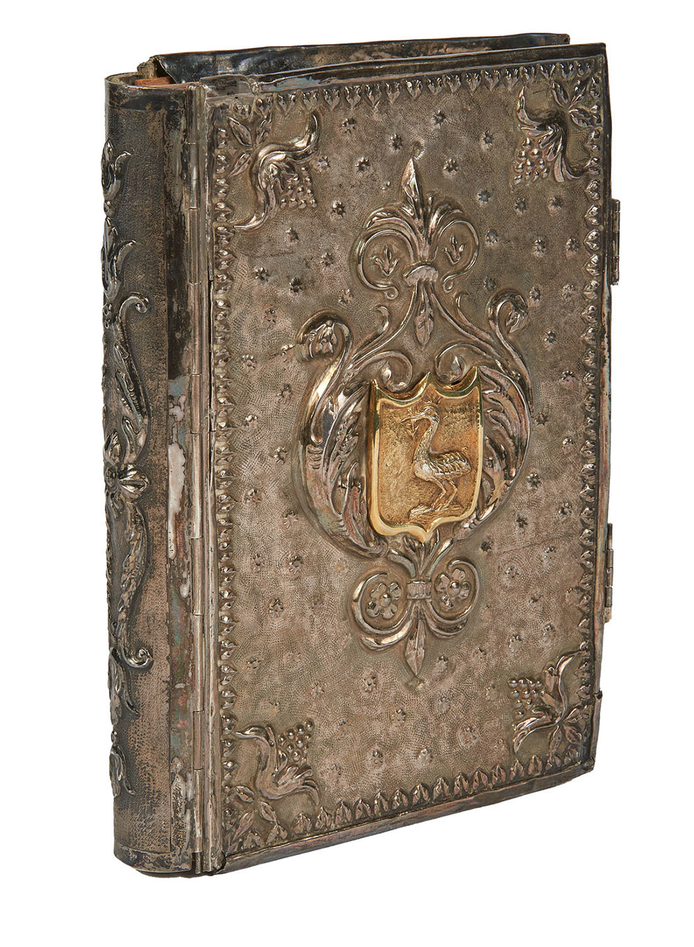 8vo (180 x 128mm). 256pp. (few occasional light stains). Fine silver binding, probably contemporary, with later gilt arms on covers. We couldn't identify the maker.
