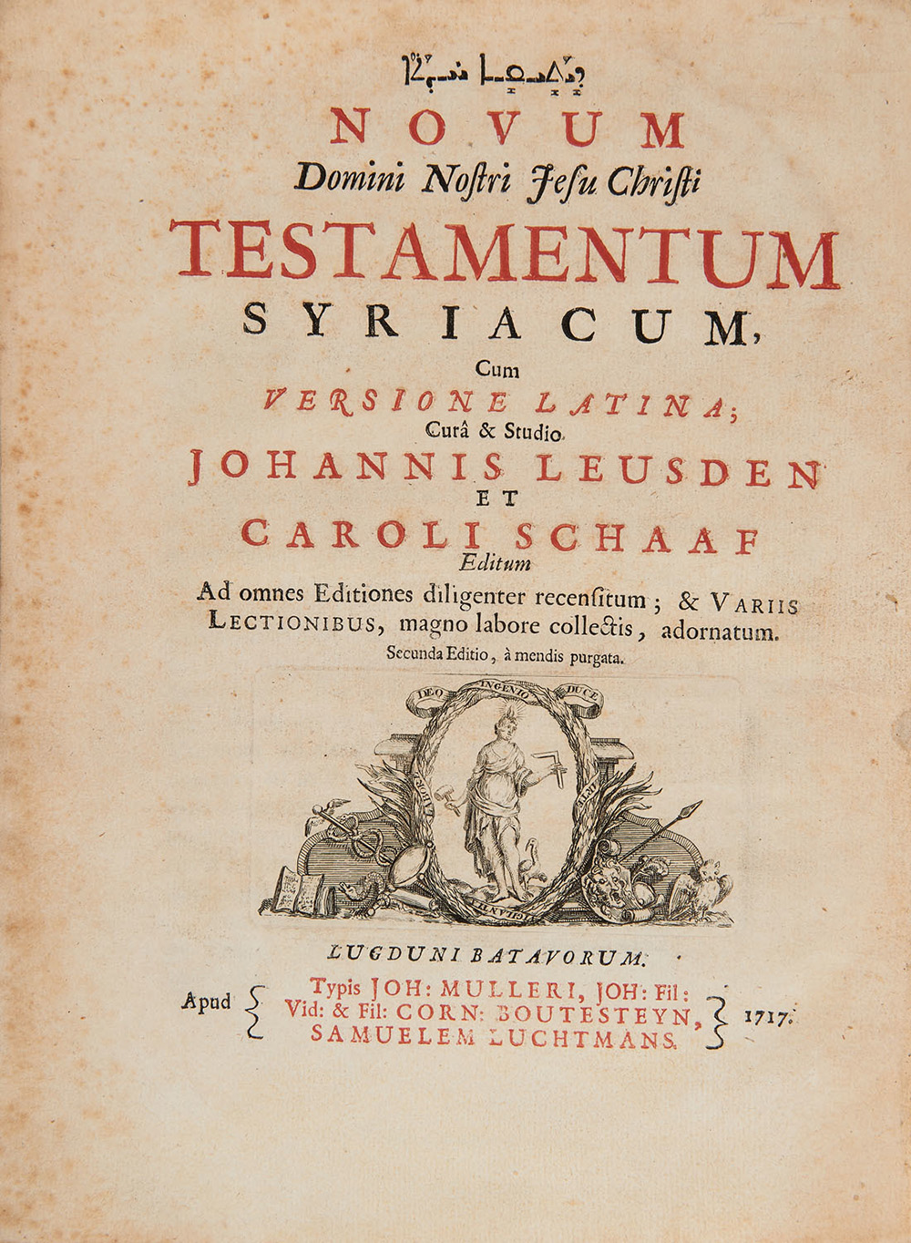 LEUSDEN Johan (1624-1699); SCHAAF Carolus (1646 - 1729) - Novum Testamentum Syriacum. Leida: Muller - Boutesteyen - Luchtmans, 1717.