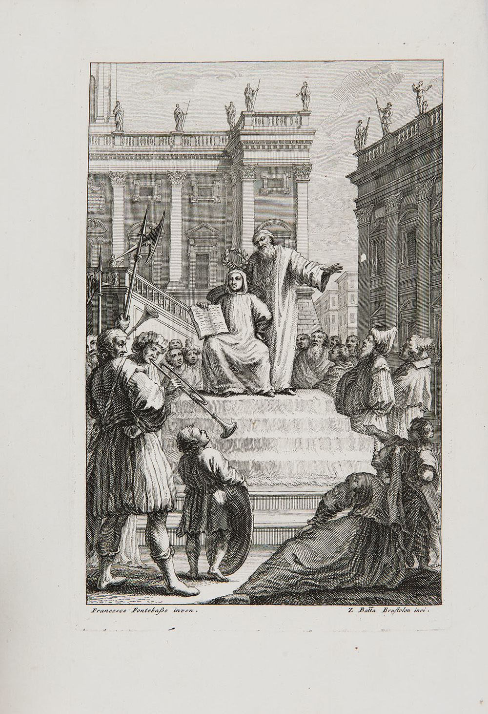 2 volumes, 4to (266 x 196mm). Half-titles, engraved frontispiece by Giovan Battista Brustolon after Francesco Fontebasso, first title in red and black, both with engraved vignettes, 3 engraved plates, numerous engraved illustrations and some initials (few occasional light waterstains). Contemporary vellum, titles on spine labels, speckeld edges (light stains). (2)