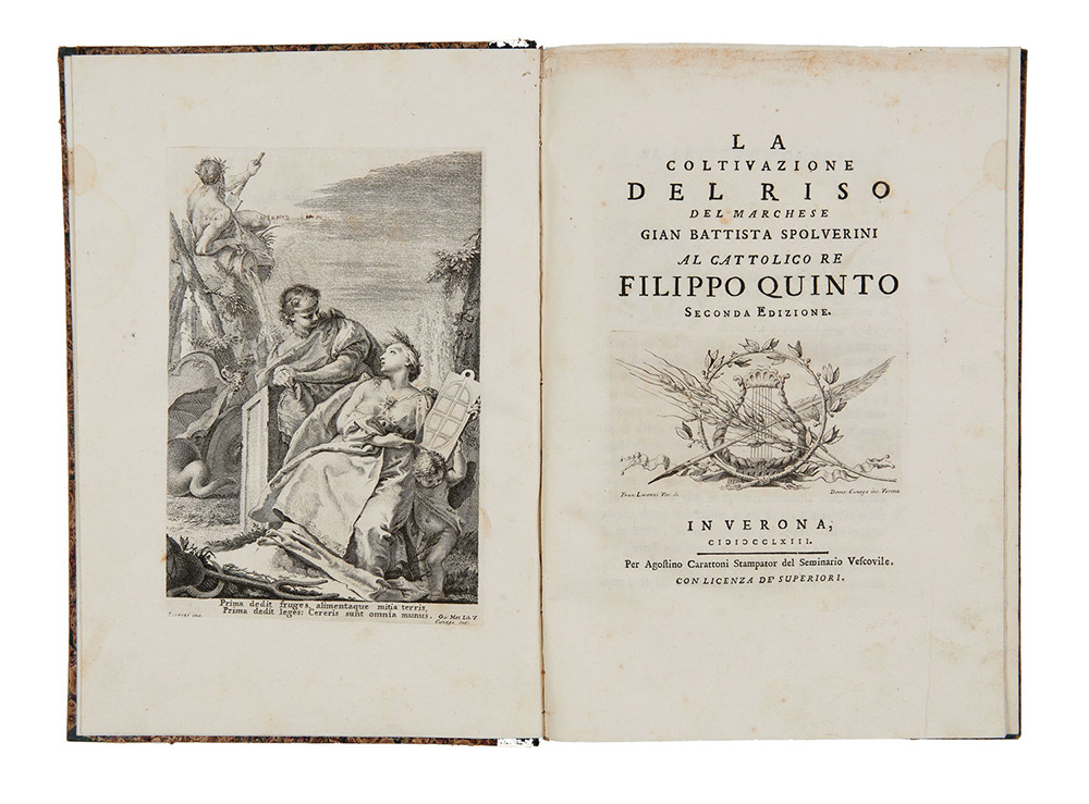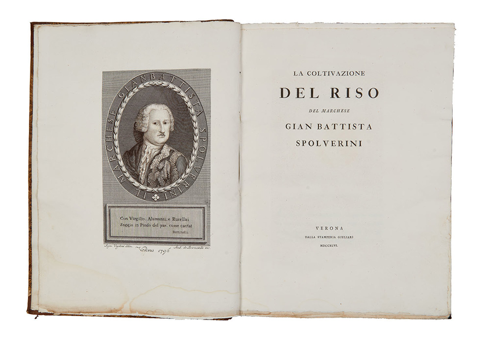 SPOLVERINI, Gian Battista (1695-1762) - La coltivazione del riso. Verona: Carattoni, 1763 [SI AGGIUNGE] La coltivazione del riso. Verona: Giuliari, 1796.