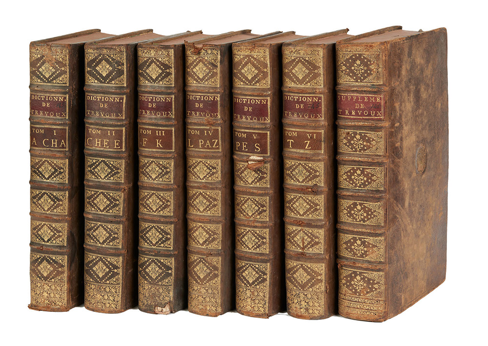 Edizione corretta e riveduta di questo fortunato dizionario stampato per la prima volta nel 1704 e la cui redazione è riconducibile ai gesuiti. Assieme ai 6 volumi di testo stampati nel 1743 si aggiunge il supplemento stampato nel 1752.
